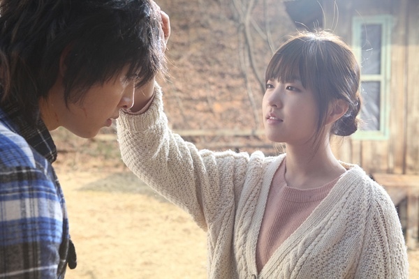 有一次,女主角彈吉他給狼少年聽,狼少年整個傾心。換他摸少女的頭,表示好感。